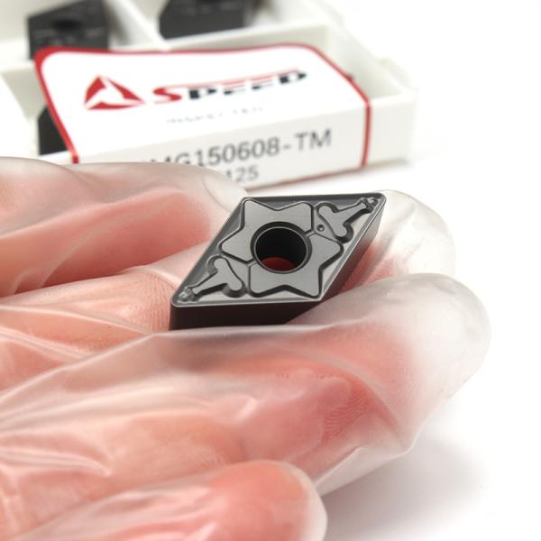 Our DNMG tungsten carbide Turning Inserts is made of imported base material with advanced high precision, which enhances the quality of the blade, high hardness, good ductility, high finish, thick coating, stable performance and improves the processing efficiency. The unique coating process, fine and smooth, no drip marks, reduce surface friction, so that the cutting resistance is smaller. And the carbide inserts are sharp and thick, so that the cutting speed is fast but not easy to break. It has wide range of application, applicable to step surface processing, model profiling processing, grooving cutting, slope processing, and could to be processed alloy steel, soft steel, carbon steel, medium steel, stainless steel, cast iron, titanium alloy,